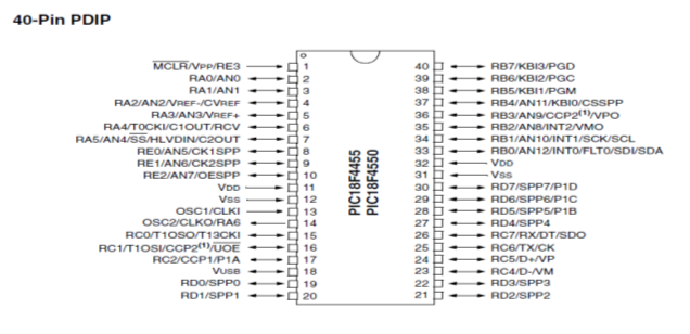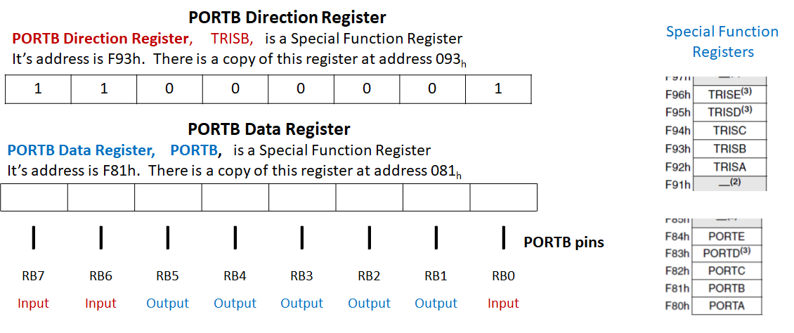 The values placed at the PORTB Direction Register define which pins will be inputs and which will be outputs.