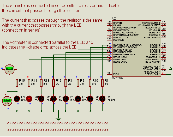 dot with the 8 LEDs that are connected to PORTB of the microcontroller. The dot