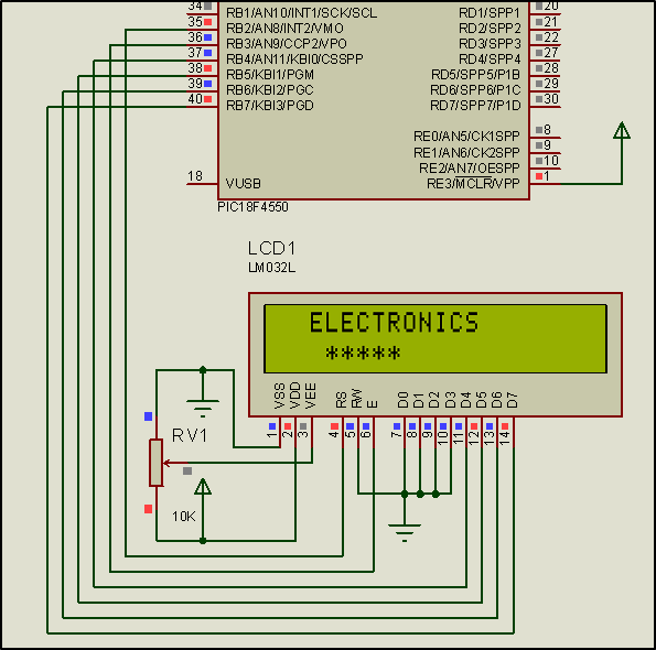 lcd_putc("ELECTRONICS"); // print the message on the LCD