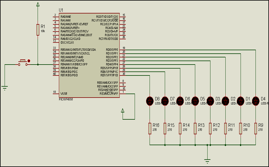 Modify the hardware and the code so that the push-button been connected in RD0
