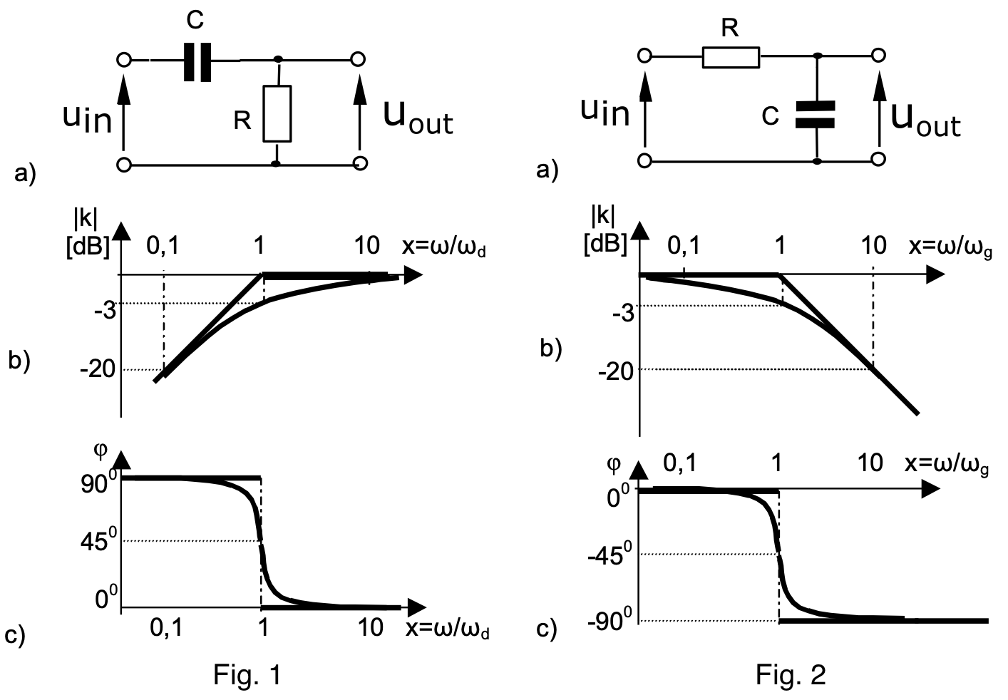 Below is a diagram of the differentiating circuit (Fig. 1) and the integrating circuit (Fig. 2). Use resistors: \( R=3 k\Omega \), \( C=51nF \).